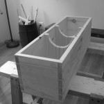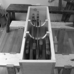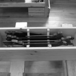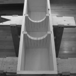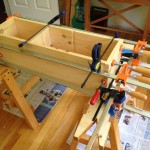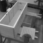 My one setback was that I had to redo the bottom board. I nailed the old one in place but I did not like the look and fit. I had rabbited the four sides to fit up in the box. My Lee-Valley moving fillister plane was set correctly, but I evidently did not tighten the depth- stop adequately. When I was planing away, I made my second mistake; I did not check the depth with my Starrett 6 inch combination square and I ended up with a 1/2″ deep rabbit, where I had set the depth for 3/8." I also set the width of the rabbit too wide, so when I put the bottom board in the box there was about a 1/8″ to 3/16″ gap all the way around the inside bottom.