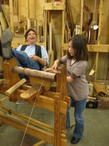 The picture on the left is Roy, who was helping my daughter, Malena, with her turning. This was taken in Jan. 2012 during the Lie-Neilson tool event at the NCSU Crafts center. The picture on the right is my son, Will, and Roy being Roy at the Jan. 2013 Lie-Neilson tool event at the NCSU Crafts center. Kids change but Roy stays the same.
