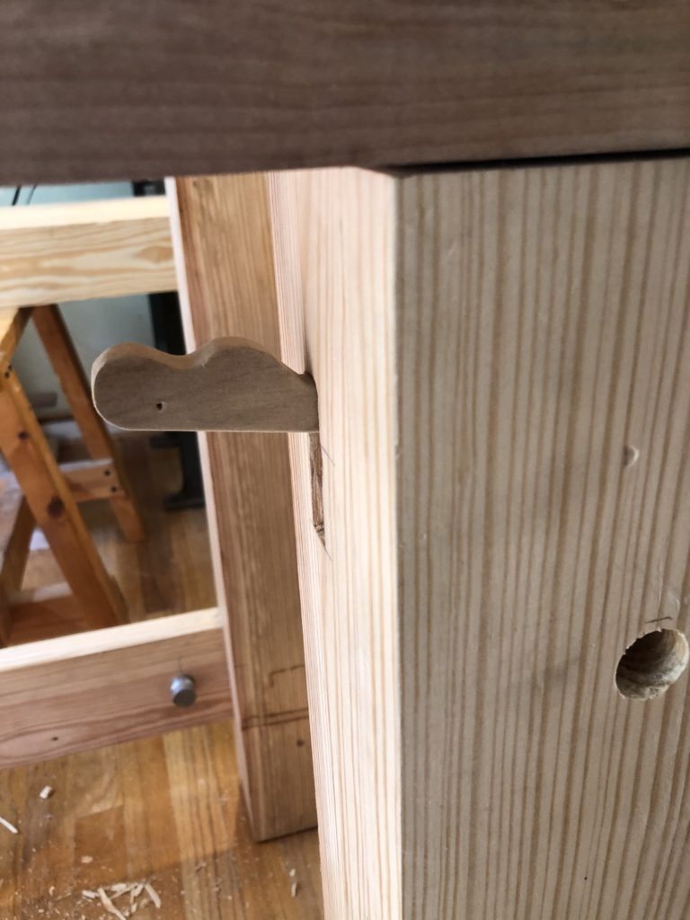 During this stay at home time, I decided to finish my loooong term project, my Split Top Roubo Workbench (more on the actual workbench in a later entry). I was working on the legs and benchtop. With this design the dog hole closest to the end or wagon vise (BenchCrafted) is directly over my right leg. The plans call for a hole drilled vertically down the leg to allow for the dog to seat flush with the top. That’s all well and good but how do you get it out?
